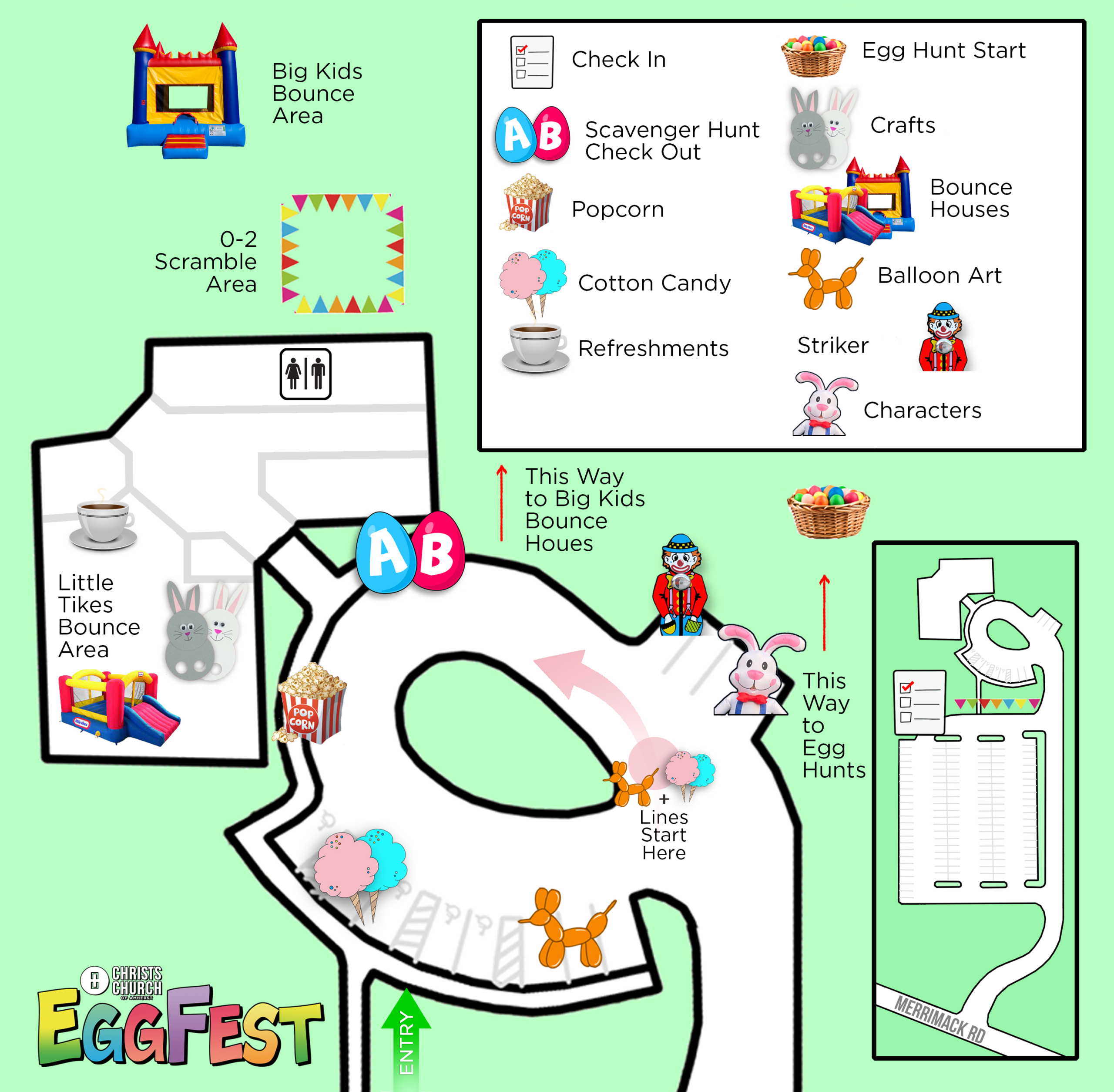 • Are there egg limits? This year, we are asking kids to gather only 15 eggs. Collection limits are lifted on the last hunt of the day for kids 9 & up.